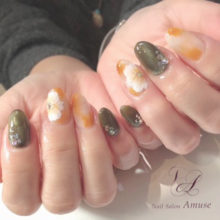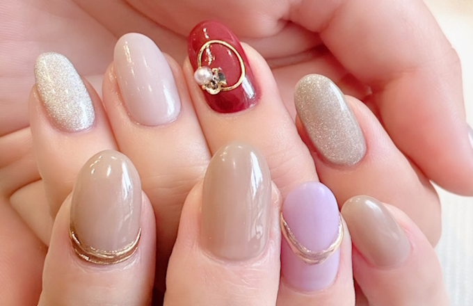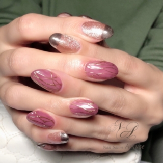 アミュゼのネイルデザインは飾りすぎ、やりすぎによって爪だけが悪目立ちすることがない上質なきれいめアートが特徴です。